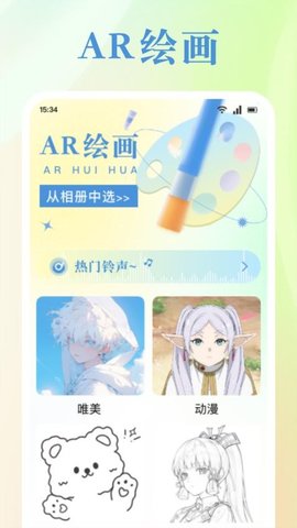 AR绘画是一款专为绘画爱好者设计的创作平台,汇聚了多种趣味绘画模式,让用户在创作过程中尽情发挥想象力。在线创建空白画板,随意选择专业绘画工具,调节画笔的颜色与粗细,轻松绘制出自己心目中的漫画作品。更有丰富的热门铃声供用户选择,一键设置个性化手机铃声,让每次来电都充满创意与个性。