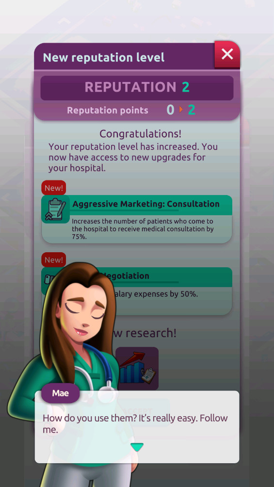 1、进入游戏后,点击屏幕开始剧情,熟悉游戏的基本操作和背景故事,让你更快融入医院的管理中。