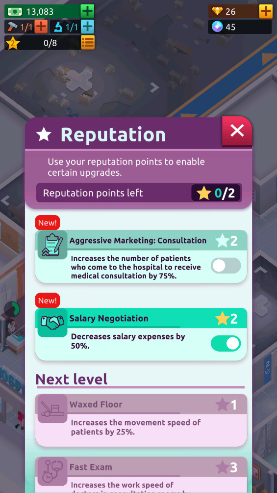 1、医院帝国大亨提供了深度的策略体验,玩家不仅要关注医院的盈利,还要考虑员工的满意度和病人的健康,形成一个良性循环。