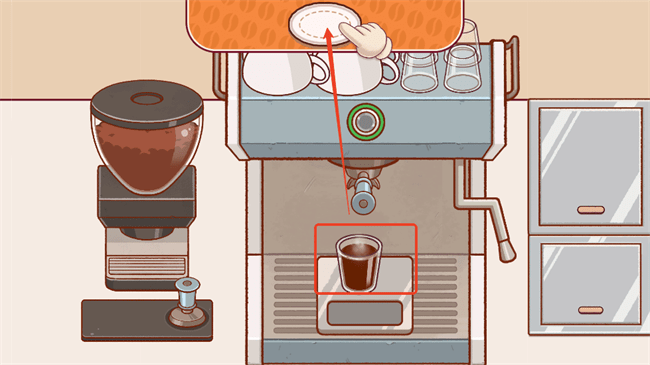 10、制作完咖啡后点击咖啡向上移动进行装盘;