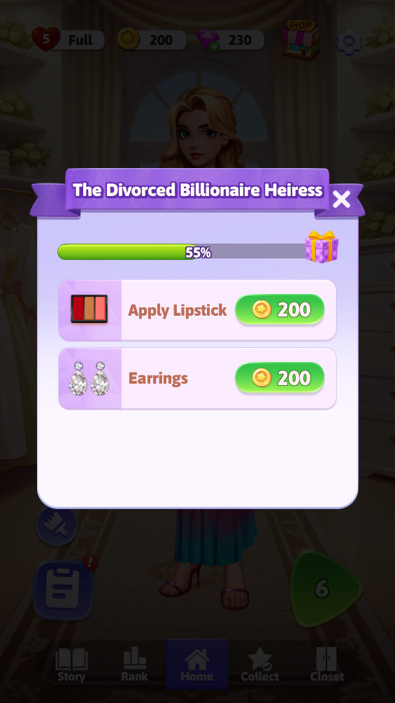 8、完成关卡后,你将获得金币和宝石,利用这些资源为角色进行时尚改造,逐步揭开斯嘉丽家族的秘密。