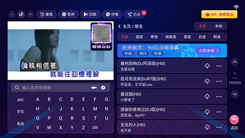 系统会自动解锁会员功能,直接选择自己想唱的歌曲。只需点击播放,便可跟着音乐尽情演唱。如果将软件安装在电视中,还可以配合麦克风享受更完美的唱歌体验。