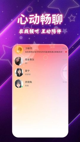 4、情感陪伴:提供在线情感倾诉的空间,让用户在疲惫的生活中找到温暖,享受品质的互动体验。