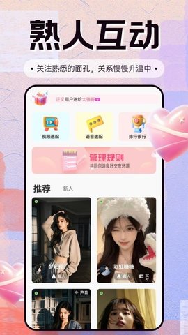 此模式让用户通过声音来结识新朋友,找到那个让你心动的声音,开启一段浪漫的声音之旅,增进彼此的情感连接。