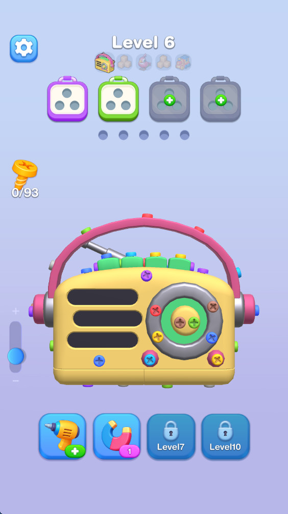 5、随着关卡的推进,难度逐渐增加,某些螺丝可能会有特殊的形状或隐藏的机制,玩家需要仔细观察,寻找解锁的线索。