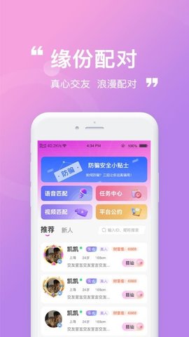 4、任务中心:每日推送专属交友任务,用户完成任务后可获得奖励,助力解锁更多社交玩法,增加互动乐趣。