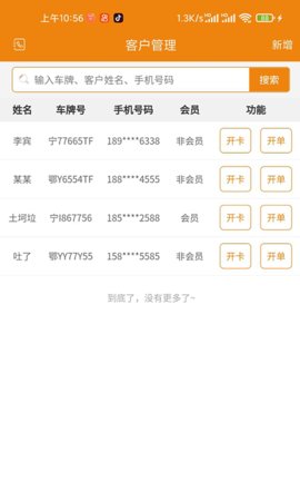 打开车店助手应用,进入主界面。此时可以看到各项功能模块,选择客户管理进行客户信息录入。