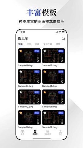 【丰富的模板库】提供多种设计主题的图纸模板,适用于不同的项目需求,帮助用户快速获取设计参考。