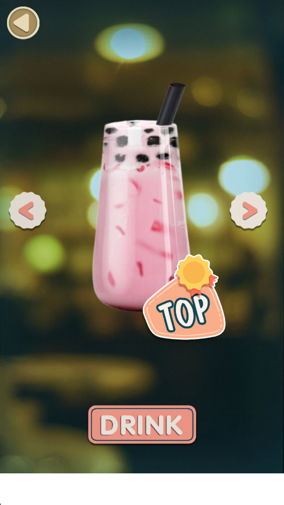 6、制作完成后,点击下方的【DRINK】按钮,倾斜手机即可模拟饮用,体验自己亲手制作的美味奶茶。