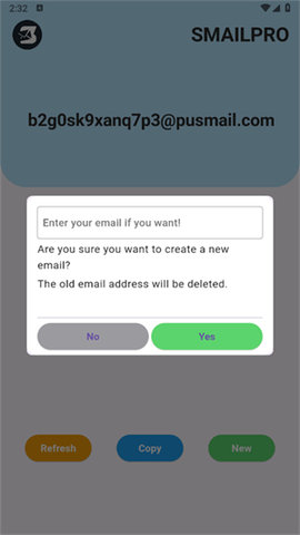 2、在主界面上,点击new按钮,系统会自动为你生成一个新的临时邮箱地址。