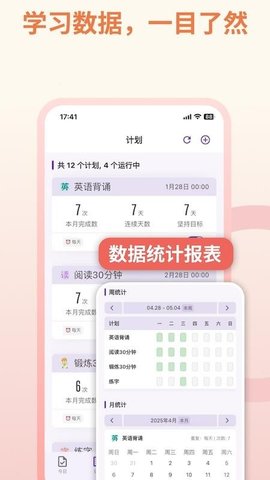 【数据可视化分析】应用将学习数据以图表形式呈现,帮助用户直观了解自己的学习进度和打卡频率。