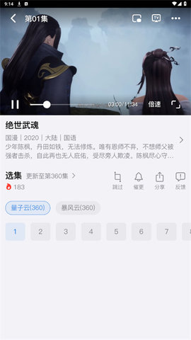 4、观看动漫:点击选择的番剧后,用户将进入播放页面,选择清晰度后即可开始观看。