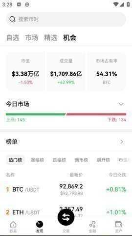 2、实时行情跟踪:用户可以随时查看各类数字资产的最新市场行情,快速把握投资机会。