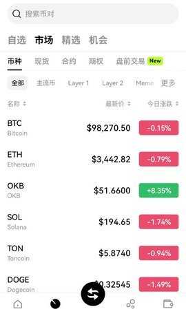1、打开易欧苹果版,进入主界面,您将看到当前市场的主流加密货币价格和交易量。
