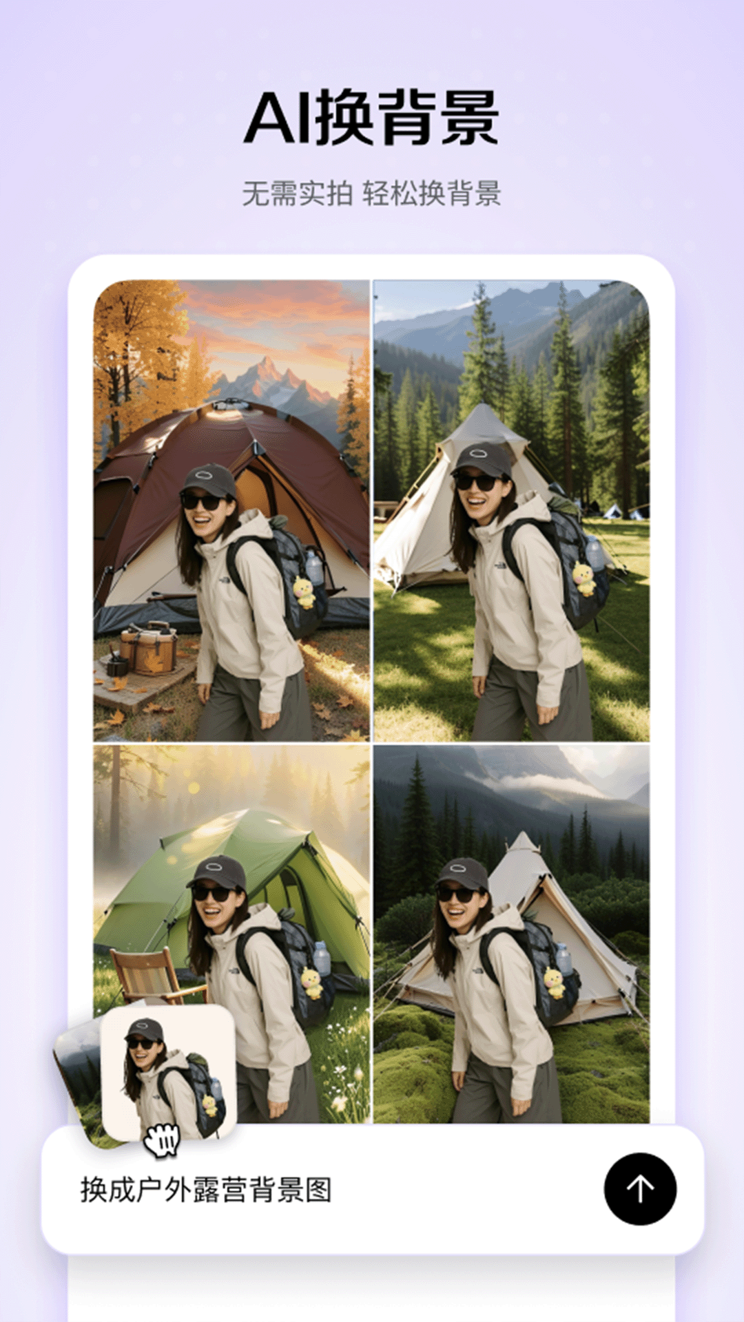 【精准抠图】AI换背景功能能够智能优化光影,实现个性化的背景。