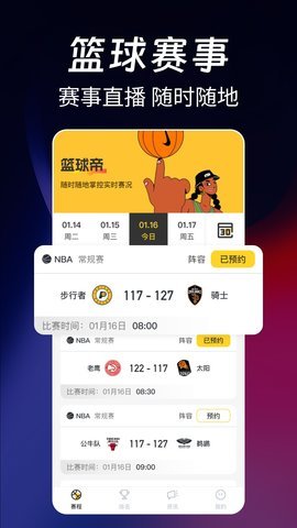 1、【全方位信息覆盖】篮球帝将直播、资讯、数据和日程整合在一个平台上,用户无需切换多个应用,轻松获取所有篮球相关信息。
