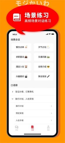 【丰富的日常用语】MOJi会话收录了大量日常用语,用户可以在多种场景中自由练习,提升口语能力。