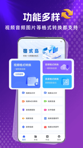 格式岛App的核心功能在于其强大的格式转换能力,能够处理音频、视频、图片及文档等多种类型的文件。用户可以在软件中轻松选择需要转换的文件格式,快速完成转换,省去了繁琐的步骤。附带了一些实用的编辑功能,短视频去水印和音频提取,帮助用户在处理文件时更具灵活性。无论是个人使用还是团队协作,格式岛都能为用户提供高效的解决方案。