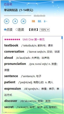 2、根据个人学习需求,选择点读或连读模式。点读模式逐句朗读,而连读模式则整体播放,帮助用户逐步熟悉课本内容。