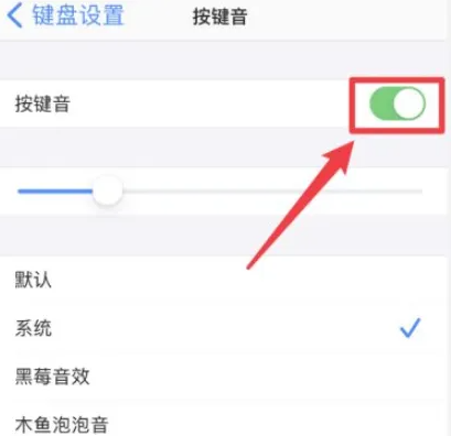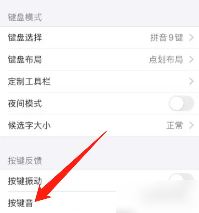 步骤四:在弹出的选项中,将按键音开关关闭,即可停止输入时的声音反馈。