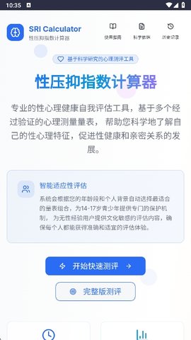 1、打开性压抑指数计算器,点击开始快速测评按钮,进入评估界面。
