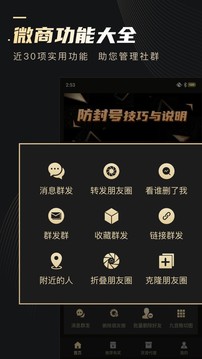 1、群发消息功能:微商助手破解版能够快速群发消息,帮助用户高效推广产品,节省时间。