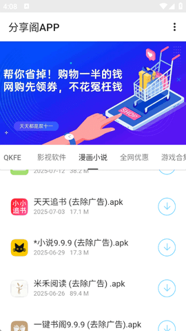 1、打开分享阁山川大河App,您将看到一个整齐的资源首页,包含了各种分类。