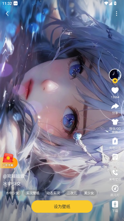 打开元气桌面 App,进入正在使用的动态壁纸详情页(或长按桌面 → 选择【元气壁纸】进入);