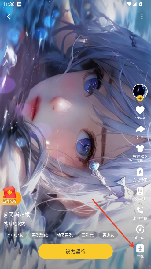 4、完成VIP订阅后,返回壁纸界面,选择你想要下载的高清壁纸,点击下载按钮,稍等片刻,壁纸将自动保存至手机相册。
