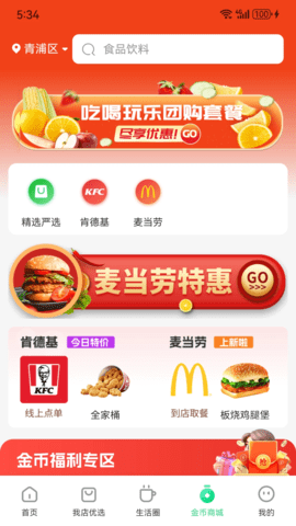 2、在首页选择你需要的服务类型,吃喝或购物。