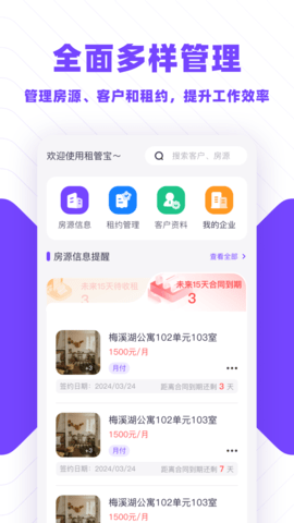1、全面管理:用户可以在一个平台上管理多个房源、客户和租约,提升整体工作效率。