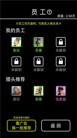 猎头系统每月会推荐三名候选者,观看广告可以刷新人才库,帮助玩家找到合适的团队成员。