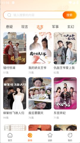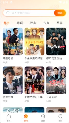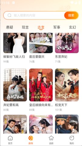 2、在软件主界面,你会看到多个以题材命名的频道入口,例如古风剧场、都市情感等,直接点击即可浏览该分类下的剧集列表。