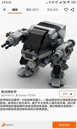 2、在模型详情页,仔细查看材料清单,确保你拥有所有必需的乐高积木,避免在拼装过程中遇到缺失材料的问题。