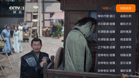 2、按下遥控器的菜单或设置键,屏幕一侧会滑出功能面板,这里列出了所有可用的直播频道。