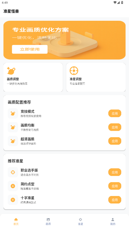 1、打开准星怪兽APP,进入主界面,您会看到多种可选的准星样式。