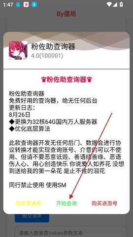 2、打开应用后,点击开始查询按钮,进入查询界面,准备进行账号信息的获取。