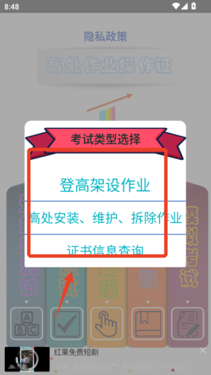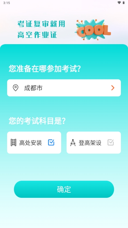 打开软件后,先选择您所在城市及对应的高处作业考试项目,确保学习内容与当地考试要求一致。