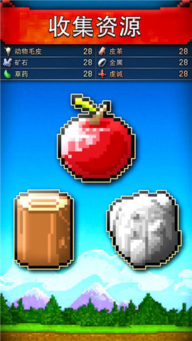 游戏中的资源收集方式非常直接,玩家只需通过简单的点击操作,即可获取食物、木头和石头等基础资源,轻松入门。