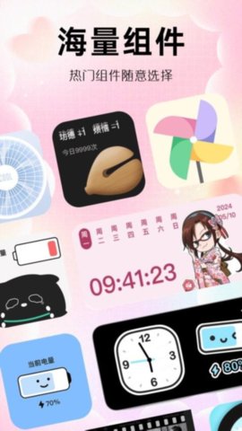 【多样化组件】用户可以在小组件页面找到丰富的小组件,选择自己喜欢的样式,轻松添加到桌面。