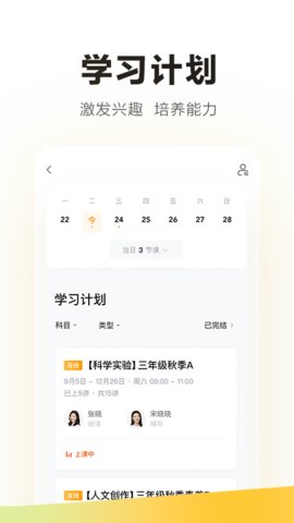1、进入课程中心后,向左滑动可查看未来七天的课程安排,点击具体课程可预览教学大纲。