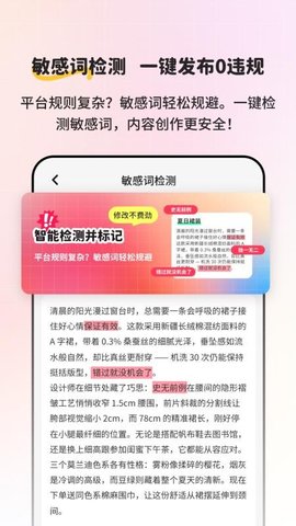 【实时检测】软件能够实时检测文案中的违禁词,帮助创作者迅速识别和修改不合规内容。