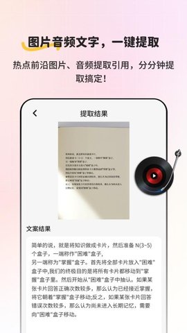 5、多形式素材提取:支持从图片及文字中提取文案,适应不同的创作场景,获取灵感素材。