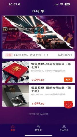 1、下载并登录DJ引擎APP,进入首页浏览音乐U盘及相关商品,初步了解产品信息。
