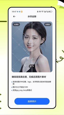2、软件配备精准的水印去除工具,支持手动和自动两种模式,让用户轻松清除不必要的水印,恢复图片本色。