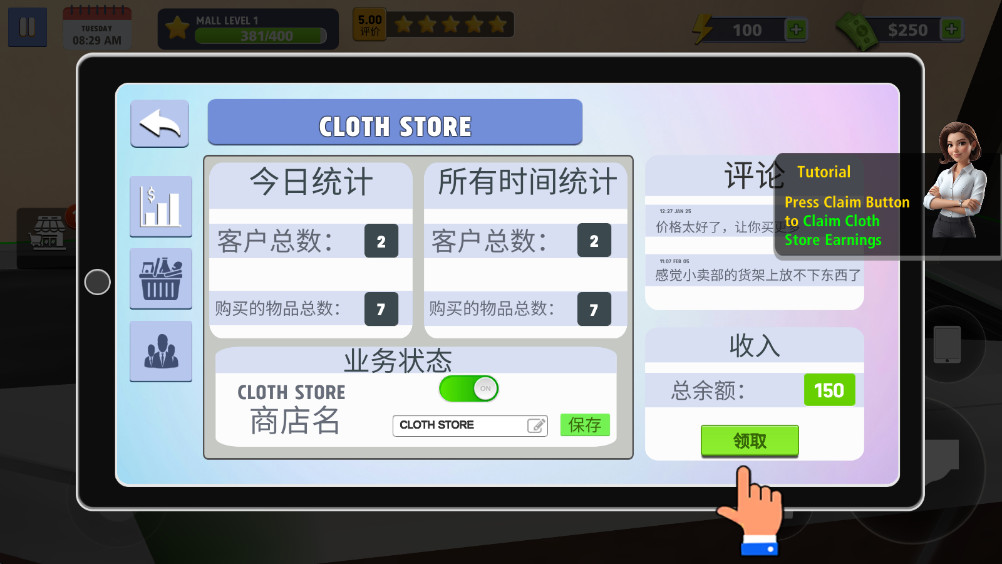 3、在游戏初期,选择一个商店进行解锁,建议从顾客需求较高的时尚精品店开始。
