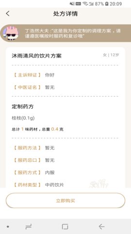 6、看诊结束后,用户可以根据医生的建议选择购买中药,系统会推荐优质药材,并提供送药上门的服务。