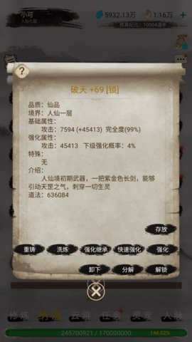 6、达到突破条件后,直接点击突破,快速增强你的实力,提升战斗能力,助你在修仙之路上更进一步。