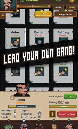 3、解锁并升级特殊角色,获得更高的利润和永久性升级,让你的帮派发展更为顺利。