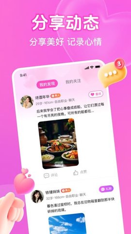 2、精准匹配系统结合用户的当前位置与兴趣爱好,帮助用户找到志同道合的朋友。